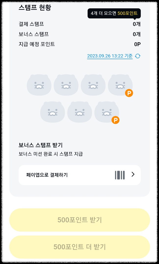 말 그대로 카카오페이로 결제를 하면 스탬프가 하나씩 쌓입니다!