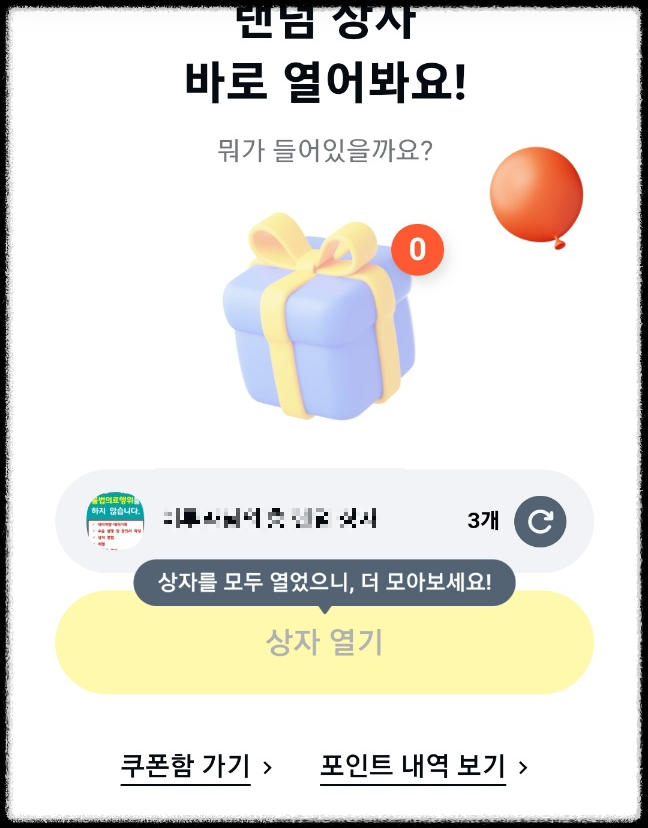 저는 현재 혜택 모아보기 완료한 상태라서 선물 상자 하나 받았어요!