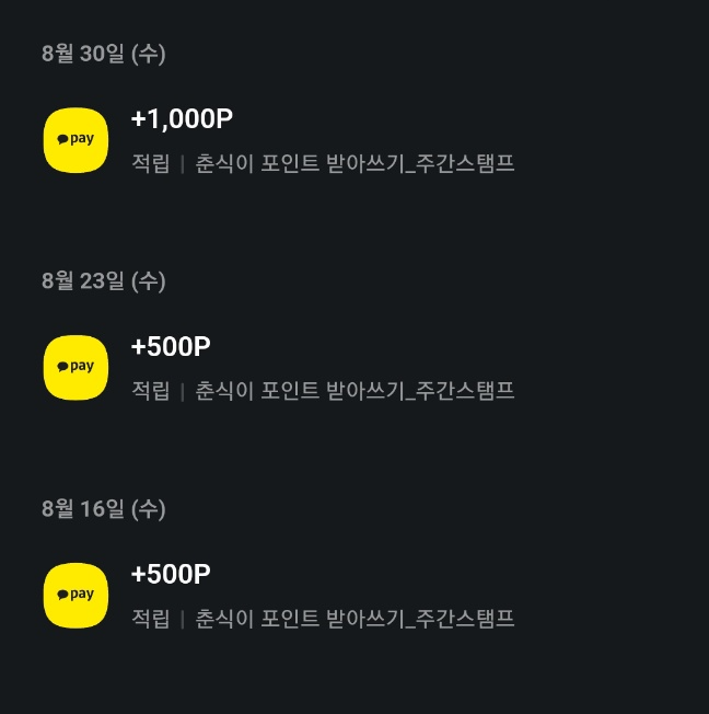 저는 춘식이 스템프로만 벌써 2.000포인트 모았네요!!