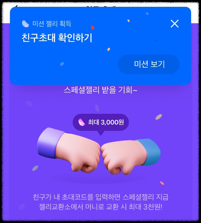 미션젤리 3개 획득!