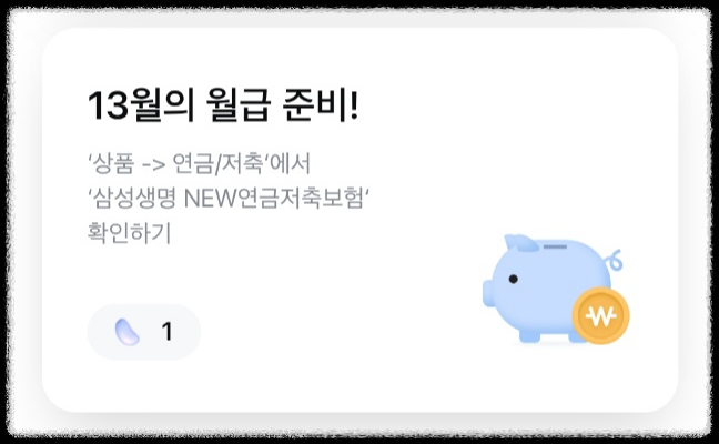 [상품] 누르고 [연금/저축] 항목에서 [삼성생명 NEW연금저축보험] 누르면 미션 끝!