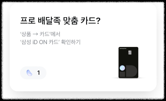[상품] 누르고 [카드] 항목에서 [삼성ID ON카드] 누르면 미션 끝!