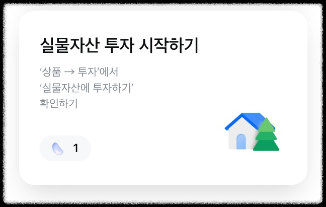 [상품] 누르고 [투자] 항목에서 [실물자산에 투자하기] 누르면 미션 끝!
