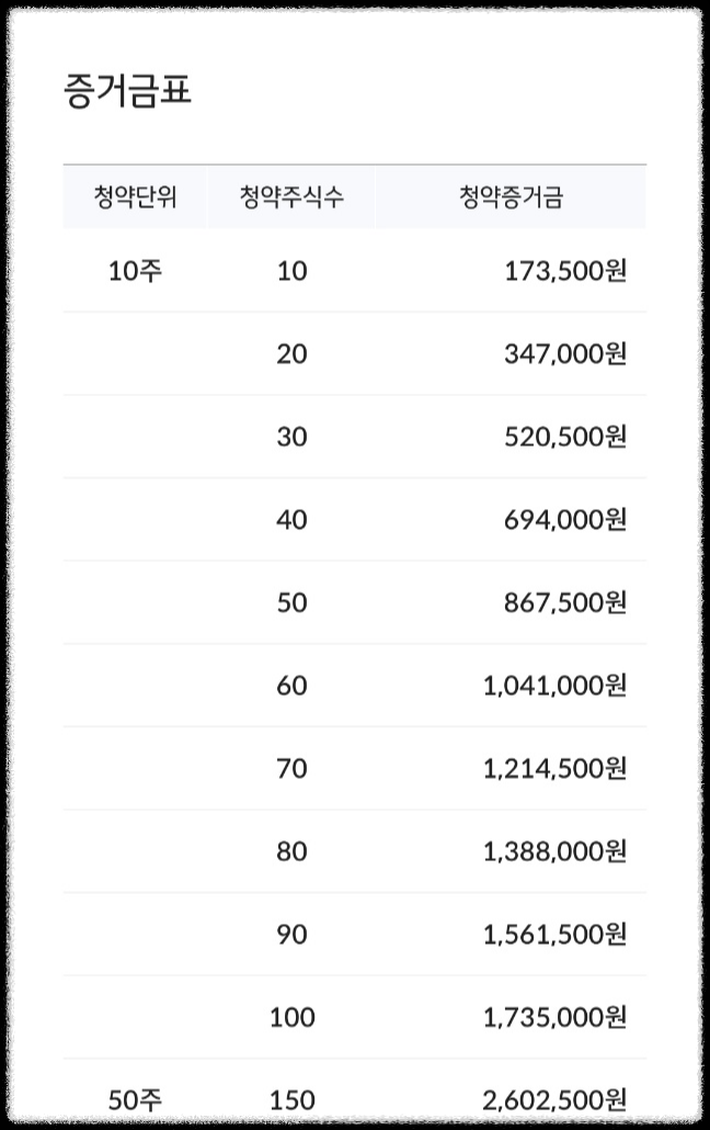 최소청약주수는 10주!