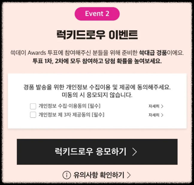 저는 오늘 럭키드로우 응모까지 마쳤습니다!